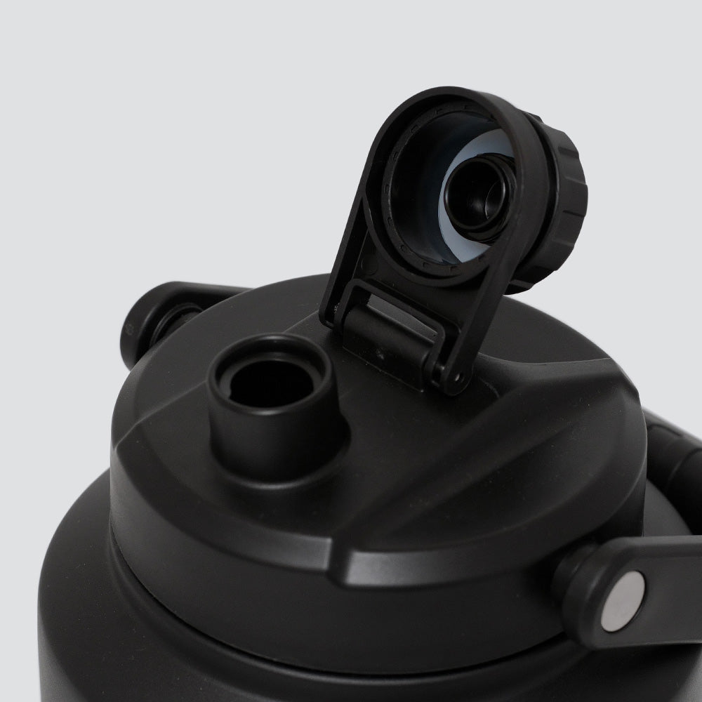 圧倒的な保令・保温能力実現のためステンレスの真空二層の間に銅プレートを入れる等、温度をキープすることを徹底して追求した構造を採用しています。さらに気圧バルブの役割も果たすキャップは蓋と一体型なので、飲み物を注ぐ際にもキャップが落ちません。キャンプからスポーツシーンまで用途に応じて選べる2サイズ。