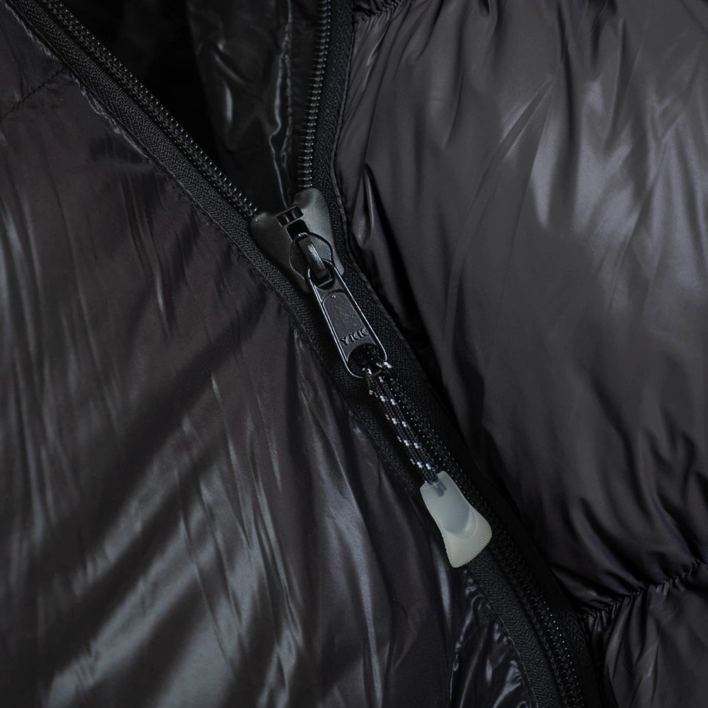 さらに開閉時の生地噛みを防ぐ専用ファスナーや外気の侵入を軽減する首回りやジッパー内側のドラフトチューブを備えています。しかもご自宅での保管でダウンをフワフワに保つメッシュの保存袋も付属。キャンプ用としてはオーバースペックですが、敢えてキャンプ専用としてお使い下さい。