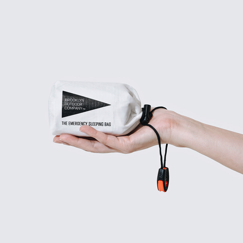 袋状なのでサイドを切って広げれば、ブランケットとにもなり大変便利です。災害時だけでなくキャンプ時の急な気温低下にも対応するお守りとして1つあると安心です。紐には簡易的なホイッスルの付いた収納袋も付属します。