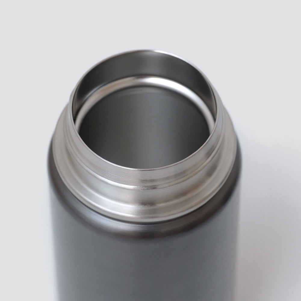 広口構造は洗いやすく清潔を保てるので安心です。シンプルなチタニウムグレーの塗装は、シーンを選ばずお選び頂けます。使用する樹脂素材は全てBPAフリー。